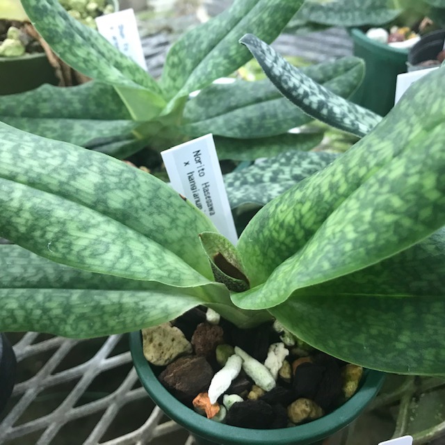 昨年の9月だったか10月だったか、趣味家の放出した分け株を入手しました。小さな苗で根が少なく心配でしたが、丈夫な個体だとしっていたので思い切って購入しました。ペタルリップの色は冴えないものの、ドーサルの点と全体のフォルムは美しい個体ですから、親として使ってみようと思っています。2.5号の素焼き鉢に植えていましたが、根がしっかり回ってきましたから、3号に鉢増ししました。あわよくば今年花芽が出ないかと欲を出していましたが、ちょっと無理のようです。