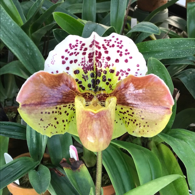 大変強健で作りやすい個体です。今までで一番大きな葉が出たので、正直もう少し良く咲くと期待していたのですが、NSは14cm超なので立派なのですが、ドーサルが少し物足りません。次回に期待です。次の花では交配も出来ると良いなと考えていますが、相手が咲いてくれるかどうかです。