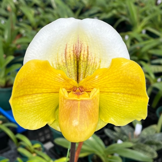 初花の蕾が膨らんできました。フラスコ出し直後は調子が良かったのですが、植え替えに失敗して充実していません。そんな中で初花が膨らんできていました。株の出来が悪いので余り気にも留めていませんでしたが、ここまで膨らんできて何か雰囲気良いんじゃない?となりました。この交配は’Esprit’に’The Giant’を交配したsibです。両親共にステムは伸びるほうですが、これは伸びていません。sibならではの性質でしょうか?この交配はフラスコを2本放出しましたが、まだ何も音沙汰がありません。どうなっているのか気になるところです。