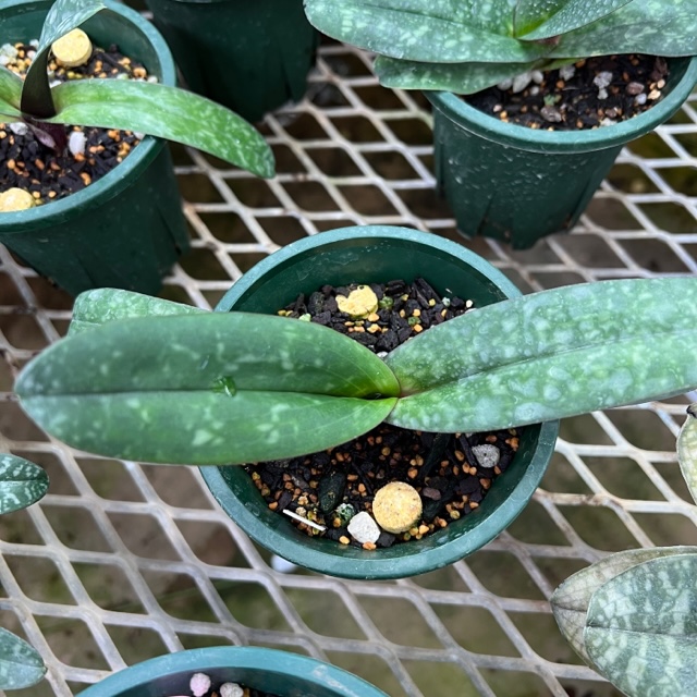 もしかすると2回目の掲載かもしれません。昨日植え替えました。この個体はどうも母体にすると採れにくいようです。昨年は花粉を使って採れました。これから咲いてくる予定の点花に交配する予定です。こういうソフトな色彩の花もいいと思いませんか?強健で次のリードも完成間近です。