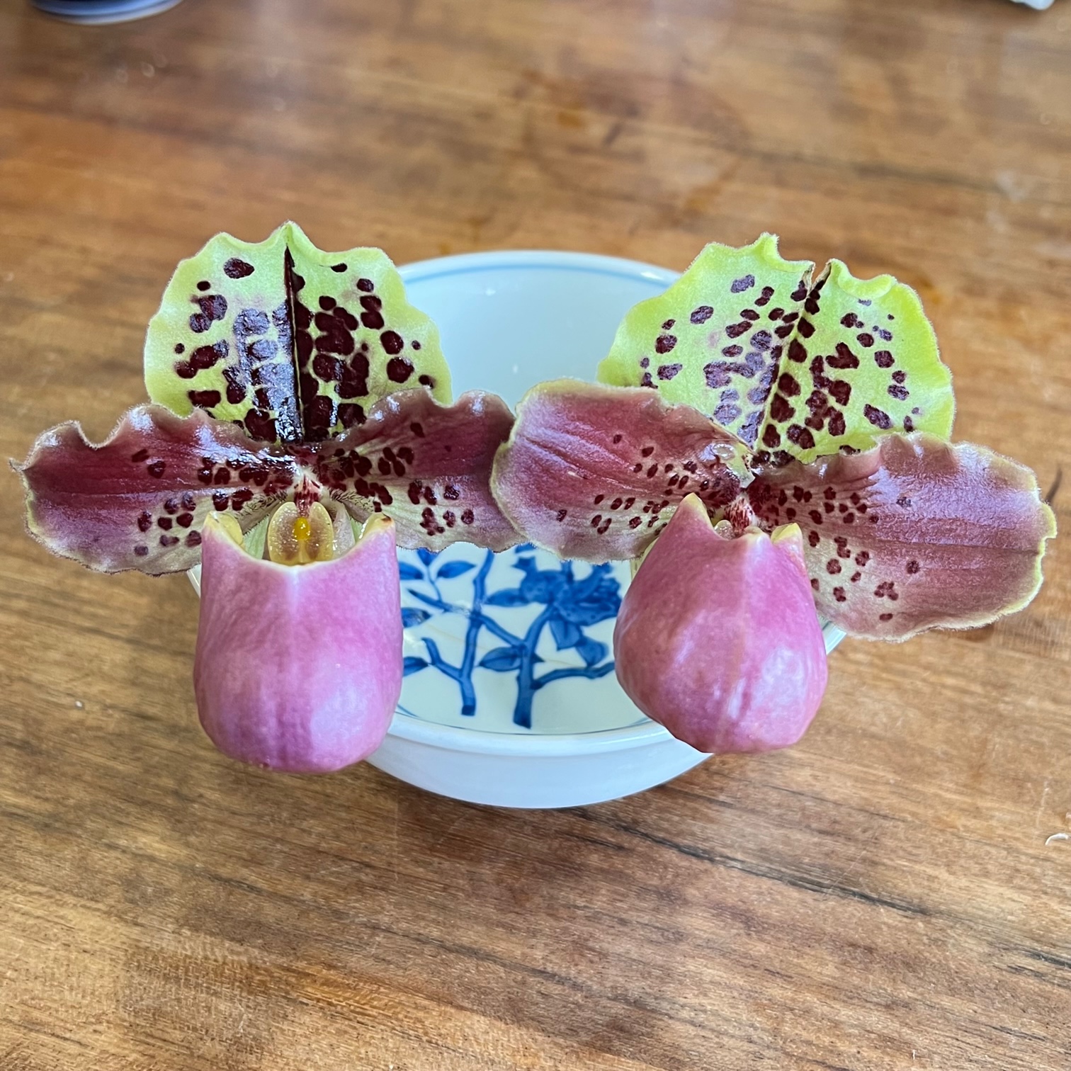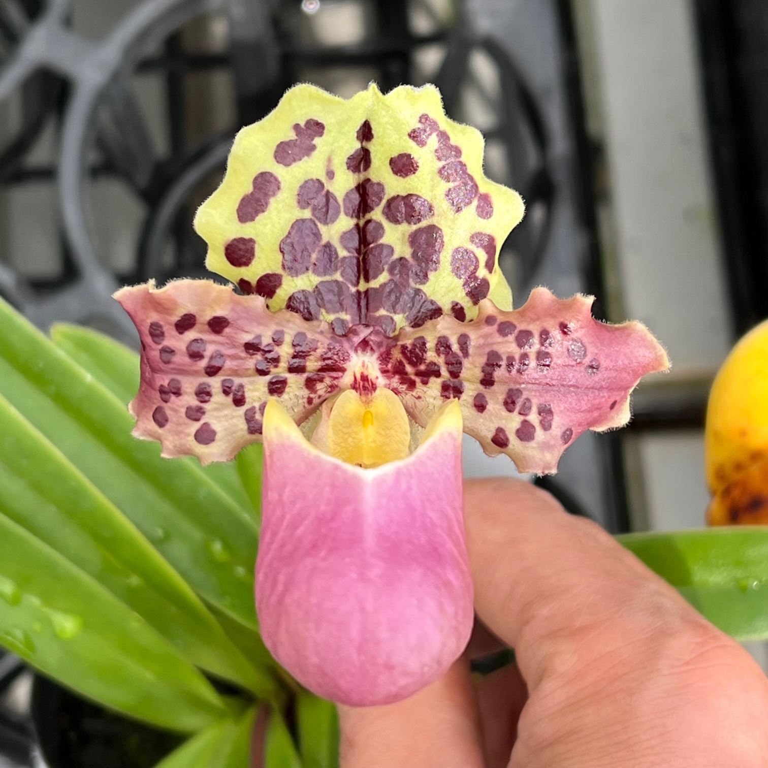 葉が幅広だった個体の初花画像。抑えはしっかりしていますが、ドーサルの発達具合は物足りないですし、反りはしっかりあります。