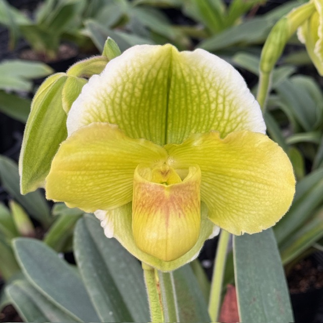 この交配の中では強健な個体です。NS15㎝程の大きな花になりましたが・・・花粉は駄目でした。夏の疲れなのでしょう。点の入り方、色彩もいつもと違います。この個体ですが、一見フラットに開く個体と言えそうですが、ペタルの付け根を見ると下の画像のように前に突き出してから、ペタルの中ほどから捻って展開するような形です。Blendia系にありがちなパターンですね。