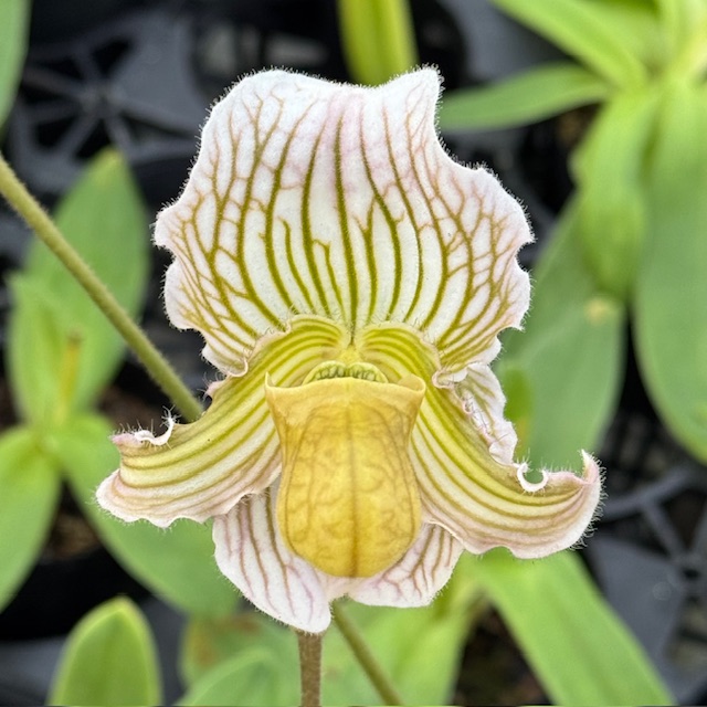 Lippewunderの血を赤花の改良にという交配です。初花の時はリップは正常でしたが・・・。今年はリップの奇形やドーサルとベントラルの掛け違いが多く見られます。夏の影響なのでしょうね。例年はアンバー系に多く見られますが、今年は通常の黄花でもリップの奇形が多いです。今年は雰囲気が良ければ残しておくのが良いと思います。
