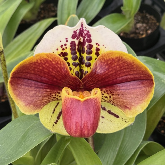 最初の点花ですが、Majestic Worldを使った交配の1つ目の最初の開花個体です。点は綺麗ですが・・・。