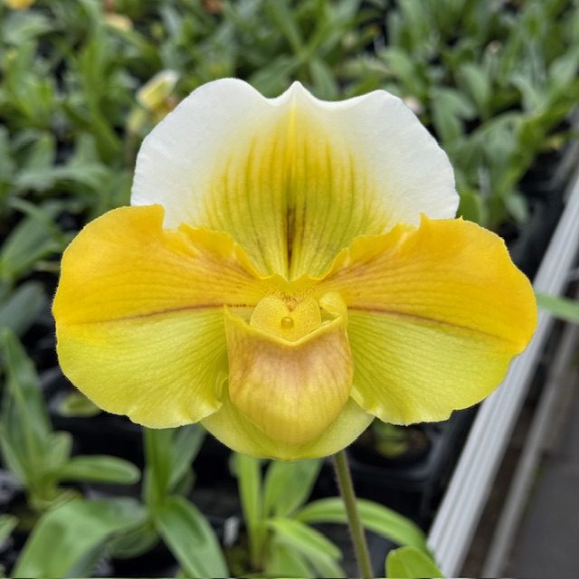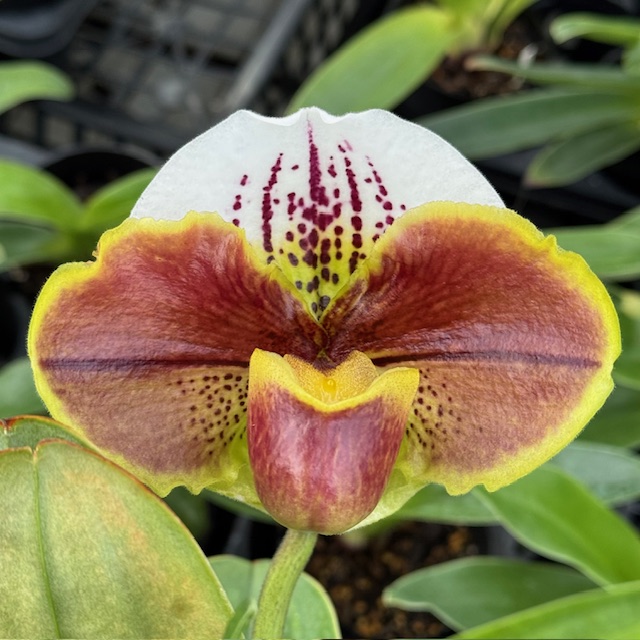まだ咲いてはいけないような小さな株から開花しました。両親にPacific Oceanの血の入ったものを使いましたが・・・2代前のMiya Bright Starに似た花になりました。下に画像がMiya Bright Star(ニューオーキッドより)です。