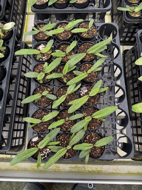 昨年の1月にインチャームさんのフラスコを趣味家さんと共同購入しました。小さな苗でしたが、根の絡みがなく出し痛みが無かった為か、順調に生長して、大きなところは20㎝くらいになりました。小さな苗だったので、2.5号に複数本植えていました。鉢を抜くと下の画像のように細い根が・・・。片親がspicerianumだからでしょうか?繊細な根をしています。